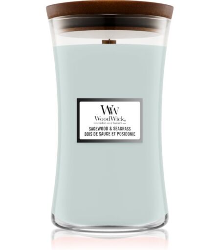 Woodwick Sagewood & Seagrass candela profumata con stoppino in legno 609 g