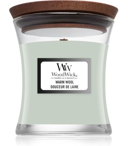 Woodwick Warm Wool candela profumata con stoppino in legno 85 g