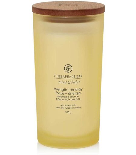 Candela Grande Tumbler Di Chesapeake Bay Candle Della Collezione Mind & Body. La Candela È Realizzata Con Vetro E Cera Di Colore Giallo. Una Vibrante Miscela Fruttata Di Ananas Succosa, Acqua Di Cocco, Bergamotto Baciato Dal Sole E Scintillanti Note Di ...