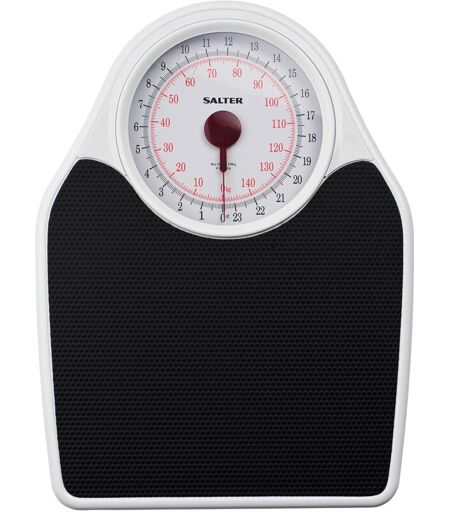 Salter 145 Mechanical Bathroom Scale Easy to read full view dial with rotating pointer Extra high capacity Large platform for generous foot room Textured vinyl mat Fine resolution scale for higher accuracy Max weight x resolutions: 150kg x 0.5kg, 23st 7lb x 1lb Product dimensions: 32 x 43.3 x 6.91cm Guarantee: 15 Years The Salter 145 Mechanical Bathroom Scales are designed in the traditional white and black doctor style to add a touch of retro to your bathroom. The scales feature a large easy-to-read, full-view analogue dial with red hands and black and red numbers. They also have a sturdy metal platform and generous foot room for easy balance. Using mechanical functionality, they have extra high capacity and a textured vinyl mat for comfort and stability. The scales can weigh up to 150kg/23st 7lbs and display in 500g/1lb divisions. The unit comes with a 10-year guarantee for peace of mind and its dimensions are 32 x 43.3 x 6.91 centimetres. Box Contains 1 x Salter Doctors Style ...