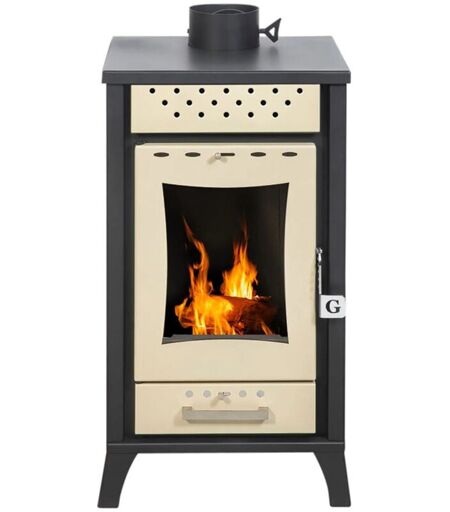 DIVINA FIRE - Stufa a Legna Olga Beige potenza 15 Kw L45,5xp48,5xh91