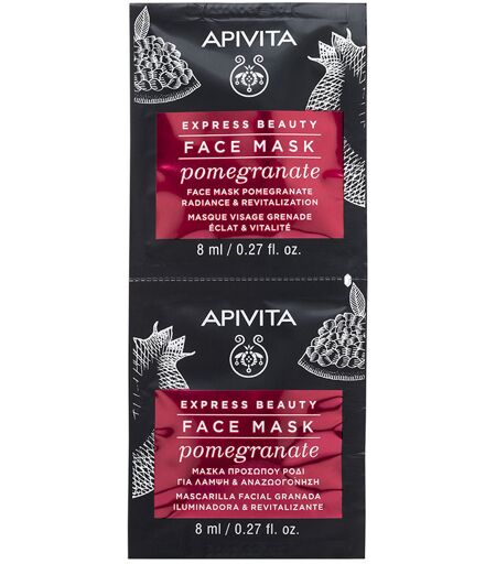 Apivita Express Beauty Mascarilla facial iluminadora y revitalizante con granada 2 x 8 ml