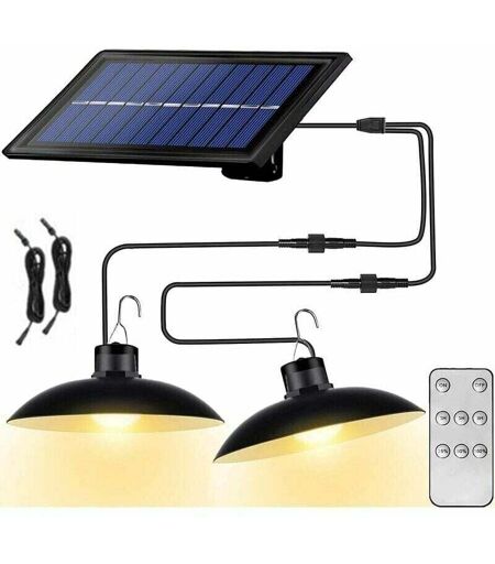 LABLANC Lampade solari Lampadario solare con telecomando impermeabile 2 teste cavo 3 m - Luce calda