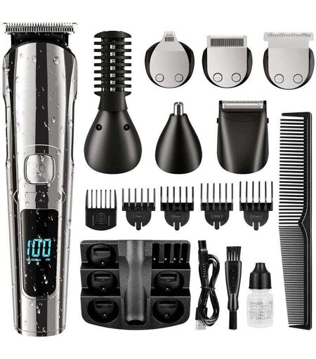 Regolabarba, Tagliacapelli senza fili per uomo, Impermeabile per corpo, baffi, naso, orecchie, viso, Rasoio elettrico, Kit per la cura della persona tutto in uno, Ricaricabile tramite USB e [Kit di bellezza multifunzionale] Il nostro kit di bellezza multifunzione tutto in uno è un sistema di rasatura di precisione professionale, che include 6 testine di rifinitura e una base di supporto per una facile raccolta e organizzazione. Dotato di 5 pettini tagliacapelli, puoi controllare con precisione la lunghezza dei tuoi capelli e disegnare la forma desiderata per barba, capelli, corpo, parti intime, barba, naso, orecchie, viso e inguine. [Facile da pulire] Il design del bagnoschiuma è facile da pulire. La lama è staccabile e facile da pulire con la spazzola inclusa. Per risultati ottimali, lasciarlo asciugare naturalmente. ^ [Display LED e ricarica rapida USB] Il display LED mostra il livello della batteria e ti ricorda di ricaricare. La batteria ricaricabile agli ioni di litio integrata ...