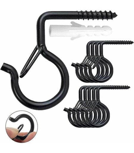 GABRIELLE 20 pezzi ganci a vite per esterni ganci a vite per soffitto per tazza da tè, ufficio domestico, pianta, luce, luci per feste di Capodanno, nero