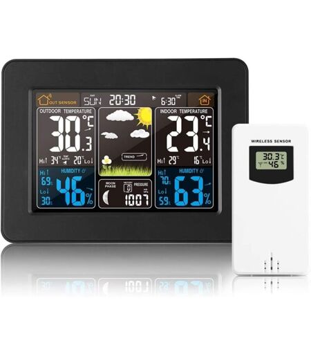 JALLERIA Stazione meteorologica digitale wireless con sensore esterno - con ora, data, temperatura, umidità, barometro, sveglia, visualizzazione delle fasi