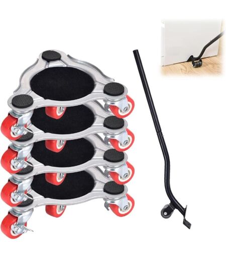Alta qualità: le nostre rotelle per mobili sono realizzate in acciaio al carbonio di alta qualità per la massima sostenibilità e affidabilità. Il rullo speciale in gomma è perfetto per pavimenti in legno e piastrelle. Kit completo: il nostro set include 4 ruote girevoli, 1 sollevatore per mobili, per una portata di peso fino a 400 kg. Ruota girevole: grazie alla rotazione a 360°, le nostre ruote ti consentono di spostare i tuoi mobili senza sforzo in qualsiasi direzione, anche negli angoli più stretti o in pendenza. Facile da usare: posiziona la tavola mobile sotto gli oggetti da spostare. spostalo e sollevalo, quindi lascia 4 rotelle sotto l'oggetto, ti consentono di lavorare più facilmente salvaguardando la schiena. Ampia applicazione: il nostro kit di trasloco è ideale per spostare e sollevare oggetti pesanti come armadi, cassettiere, scatole, mobili, elettrodomestici. ...