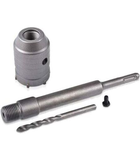 Sega a tazza SDS da 40 mm + biella da 200 mm + punta elicoidale + vite di posizionamento, per pareti in cemento armato, mattoni, bocchette dell'aria condizionata. Materiale: lega. Colore: argento. Stile: seghe a tazza. Materiali compatibili: pietra, legno, alluminio. Quantità: 1. Dimensioni: 30 mm, 35 mm, 40 mm, 45 mm, 50 mm, 55 mm, 60 mm, 65 mm. Adatto per: tutti i trapani a percussione con impugnatura SDS-max. Alta qualità: carburo YG8, matrice 40CR, lega di saldatura ad alta frequenza, molto resistente. Funzionamento semplice, foratura leggera e veloce. [DESIGN DELLA LAMA]: Combinando lame in alluminio arrotondate, ogni lama sopporta parte del carico e non teme di scoppiare. [TECNOLOGIA DI SALDATURA AD ALTA FREQUENZA]: I fori di saldatura sono molto resistenti, lisci all'interno e all'esterno. Fuori dalla bocca di saldatura, tacca precisa, aspetto ordinato. [AMPIAMENTE UTILIZZATO]: Ideale per forare calcestruzzo, pietra, mattoni, cemento, muratura, calcestruzzo aerato, blocchi ...