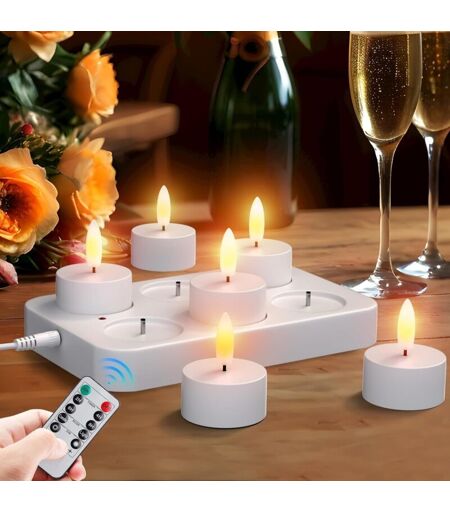 LABLANC - Set di 6 candele LED ricaricabili, lumini LED elettrici con fiamma tremolante, con stazione di ricarica e telecomando, decorazione per