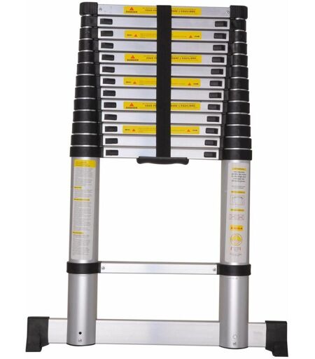 Scala telescopica in alluminio con 14 gradini e lunghezza massima 410cm Descrizione: Questa scala in alluminio é molto robusta e ultraleggera. Il suo sistema di blocco garantisce sicurezza ad ogni utilizzo. Molto compatta, questa scala è adatto per il trasporto nel bagaglioio dell'auto o nella cabin di un furgone. Contenuto del set: 1 Scala in alluminio 1 Nastro di chiusura (tipo velcro) Dettagli tecnici: Altezza massima: 410cm Altezza chiusa: 91cm Altezza regolabile: da 91 a 410cm Numero gradini: 14 Sicurezza: Sistema di blocco per ogni sezione Tipo di pioli: rettangolare con scanalature antiscivolo Tipo di piedi: cilindrici con antiscivolo Portata: 150Kg Dimensioni del pacco in mm (larghezza*altezza*profondità): 91x49x9cm Peso: 11,3Kg ...