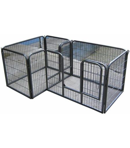 Questo prodotto è consegnato in 7 pannelli. Due pannelli includono una porta di accesso per facilitare l'ingresso dei tuoi animali. Puoi dopo combinare e collegare questi pannelli insieme, come lo desideri. Non devi rispettare nessuna forma. Puoi tenere i tuoi animali separati o collegare tutto in uno. Le porte hanno una sicurezza di blocco a scorrimento. Questo tipo di recinzione è utilizzata molto in casa come recinzione di addestramento, o per separare i cani e gli animali dai cuccioli. È anche possibile utilizzarla fuori per fare respirare e sgambettare i tuoi animali domestici. La costruzione è robusta e resistente, gli animali piccoli non possono fuoriuscire e il meteo non può farla ribaltare (presa vento limitata). Dati Tecnici: 3 pannelli di 102 x 70 cm 3 pannelli di 68 x 70 cm 1 pannello di 105 x 70 cm 2 porte Finitura: Vernice martellata Dimensioni dell'imballaggio: 107 x 72 x 17 cm Peso: 27 kg ...