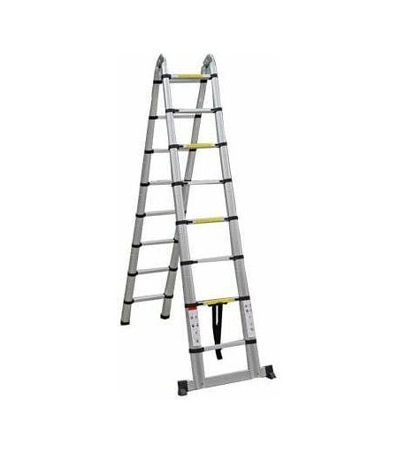 Scala / scaletta telescopica multifunzionale in alluminio con 16 gradini e altezza massima 500cm Descrizione: Molto compatta e leggera, questa scala è adatto per il trasporto nel bagaglioio dell'auto o nella cabin di un furgone. Il suo sistema di blocco garantisce sicurezza ad ogni utilizzo. Questa scala mutifunzionale può essere usato come una scala semplice o come una scala a doppia salita. Questo prodotto molto robusto richiede pochissima manutezione e può essere lavato con acqua. Contenuto del set: 1 Scala / scaletta in alluminio 1 Nastro di chiusura (tipo velcro) Dettagli tecnici: Altessa massima come scala: 500cm Altessa massima come scaletta: 250cm Altezza chiusa: 99cm Numero gradini: 16 Spaziature tra i scalini in mm: 300 Sicurezza: Sistema di blocco per ogni sezione Tipo di pioli: rettangolare con scanalature antiscivolo Tipo di piedi: cilindrici con antiscivolo Portata: 150Kg Dimensioni del pacco in mm (larghezza*altezza*profondità): 1000* 530*200 Peso: 17,5Kg ...