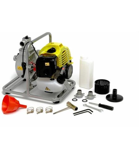 Pompa dell'acqua termica Motopompa benzina 2 T 43 CC 2 CV 8000 l/h Pompa dell'acqua/Motopompe con motore a benzina 2 tempi 43cc Altezza massima dell'acqua di 35 m Modello portatile poiché il suo peso non supera gli 8 kg. Il suo telaio d'acciaio la renderà facile da spostare dove vuoi. Sistema easy start Accesso rapido e senza attrezzi al filtro ad aria, manutenzione facile Quadro su silentbloc per ridurre le vibrazioni Funzionalità e vantaggi Ingombro limitato Estremamente compatto Struttura stabile e pratica da riporre Facile da pulire Perché una pompa dell'acqua? Per non più dipendere dai vigili del fuoco, di conoscenti o amici in caso di problemi. Questa macchina è quella che ti serve per affrontare eventuali alluvioni e ti garantirà la redditività dell'acquisto al primo problema, prevenendo gravi danni alla tua casa o ai tuoi mobili. Pensaci e agisci ora! Pensaci, non avrai più bisogno di sperare che qualcuno venga ad aiutarti... Dati tecnici: Motore 2 Tempi 1E40F-5 Cilindrata: ...