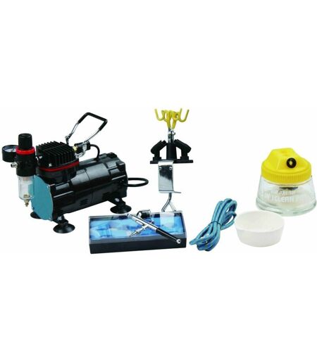 COMPRESSORE SILENZIOSO PER AEROGRAFO AD ALTE PRESTAZIONI AS18-2 La soluzione intelligente: è la macchina ideale dalla potenza eccellente, ideale per tutti i tuoi lavori di verniciatura e aerografia, che tu sia un principiante o un professionista. Adatta per costruzione di modelli, ceramiche, cosmetica, caschi, riproduzioni tecniche, abbronzatura, tatuaggi, prodotti tessili, nail art, pitture a base d'acqua o per verniciatura standard. Leggero e facile da trasportare, questo compressore lavora con una silenziosità di 47dB. Il compressore funziona in maniera completamente automatica e con poche vibrazioni. Grazie al suo pistone senza olio, l'aria non viene contaminata. Il compressore è anche fornito di filtro aria, regolatore d'aria e manometro. Descrizione tecnica: Compressore a pistone senza olio Potenza: 150W(1/5HP) RPM: 1450RPM Flusso aria: 23L/min Controllo pressione: 0-4 bar Connessione tubo: 1/8''(9,51mm) Lunghezza cavo alimentazione: 1,9m Dimensioni: 240x135x210mm Peso: 3,4Kg ...