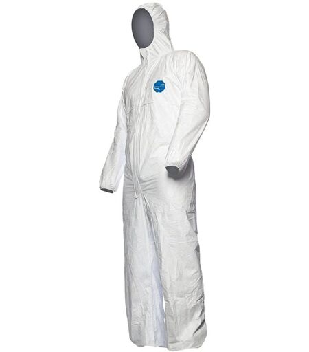 Tuta di protezione chimica di tipo 5- 6 DuPont nuova Tyvek 500 Xpert bianca per la protezione avanzata da schizzi di liquidi chimici a base d'acqua amianto prodotti farmaceutici particelle radioattive minacce biologiche PLUS proprietà intrinseche della barriera, comfort durata del materiale Tyvek La nuova tuta Tyvek 500 Xpert offre una protezione di ben 3 volte maggiore per i liquidi e 6 volte di più per particelle disperse nell'aria rispetto alle precedenti Tyvek 500. Queste tute da lavoro offrono una vestibilità migliore che protegge bene durante il movimento. Anche il cappuccio è più ergonomico e segue meglio i movimenti del capo per proteggere efficacemente durante l'intera sessione di lavoro. Anche l'indossabilità con altri dispositivi, come le maschere, è migliorata. Questo modello ha la cerniera più grande così si apre e chiude facilmente anche indossando i guanti di protezione. COME PUÒ PROTEGGERE DI PIÙ? Perché le cuciture sono realizzate con una nuova tecnologia, attualmente ...