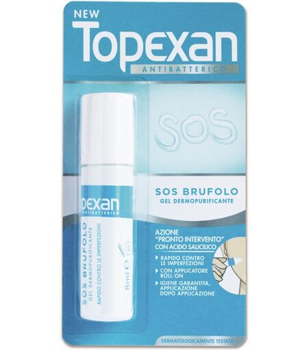 NEW - Topexan - SOS BRUFOLO - Descrizione Gel dermopurificante ad azione "pronto intervento contro i brufoli. Rapido contro le imperfezioni, con applicatore roll - on. Trattamento cosmetico unisex dermopurificante in gel concentrato. Contiene acido salicilico specifico per asciugare progressivament… ...