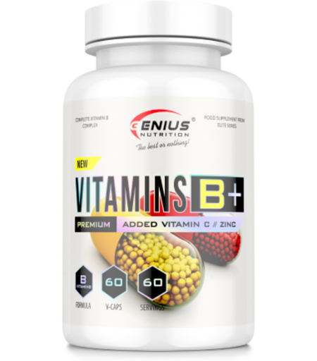 Vitamine B – tutti le vitamine del gruppo B raccolte in 1 capsula. Il prodotto Vitamine B+ del marchio Genius Nutrition unisce tutte e 8 le vitamine del gruppo B, le quali sono importanti per il funzionamento del nostro organismo, poiché partecipano a numerosi processi, ma funzionano meglio insieme – i loro ruoli infatti si collegano e si integrano. Per un ulteriore supporto del corpo, il complesso contiene anche gli antiossidanti vitamina C e zinco, anch'essi nutrienti essenziali. Le capsule contengono anche zinco e vitamina C – per un funzionamento ancora migliore. Le vitamine del gruppo B sono veramente versatili, insieme alla vitamina C e allo zinco contribuiscono: a ridurre la stanchezza e l'affaticamento (C, B2, B3, B5, B6, B9, B12), al funzionamento del sistema nervoso (C, B1, B2, B3, B6, B7, B12) e del sistema immunitario (zinco, C, B6, B9, B12), al normale funzionamento psicologico (C, B1, B3, B6, B7, B9, B12), al rilascio di energia durante il metabolismo (C, B1, B2, B3, B6, B7, B12), al mantenimento della vista (zinco), alla protezione delle cellule dallo stress ossidativo (zinco, C, B2), alle capacità cognitive (B5) e alle funzioni cognitive (zinco), al regolamento del funzionamento degli ormoni (B6), al metabolismo delle proteine e del glicogeno (B5), dei macronutrienti (B7), degli zuccheri, degli acidi grassi, al funzionamento del cuore (B1, B2, B6, B9), al mantenimento dei globuli rossi normali (B2, B6) e del sangue (B9), al mantenimento di capelli, pelle (B7, zinco), ossa, unghie (zinco) e mucose (B7) sane, allo sviluppo del tessuto materno durante la gravidanza (B9), alla produzione di collagene per il normale funzionamento di ossa, cartilagini, vasi sanguigni, pelle, gengive e denti (C). Complesso per più energia, rafforzamento dell'immunità e del sistema nervoso. I vantaggi dell'uso delle capsule Vitamine B+ del marchio Genius Nutrition: tutte e 8 le vitamine del gruppo B raccolte in 1 capsula, con l'aggiunta degli antiossidanti vitamina C e zinco, supporto versatile – dall'immunità, al funzionamento psicologico, al sangue e alla pelle, dosaggio e uso semplici, senza glutine e lattosio, un'ottima scelta per tutti – anziani, sportivi e chiunque voglia supportare ulteriormente il proprio corpo, sufficiente per 2 mesi di uso regolare. Il prodotto è un integratore alimentare. ...