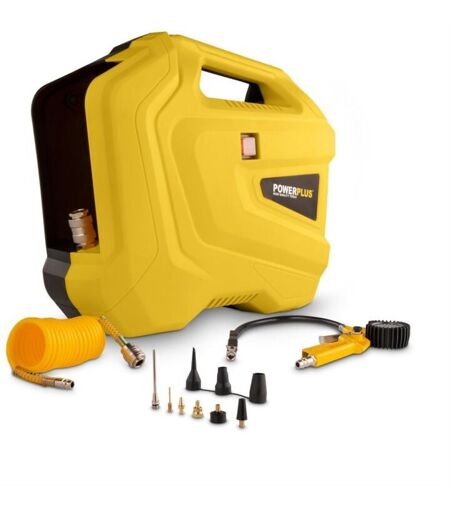 Informazioni sul prodotto : Prodotto: Compressore portatile Ambito: Utensili pneumatici Pressione nominale: 8 bar Portata d'aria (capacità ): 180 l/min Tensione nominale: 230 V Frequenza nominale: 50 Hz Potenza nominale: 1100 W - 1,5 CV Velocità di rotazione: 3550 min-1 Classe di protezione: II Grado di protezione: IP20 Pressione acustica: LpA 75 dB(A) Potenza acustica: LwA 95 dB(A) Marca: PowerPlus Consegna con 10 accessori : Flessibile di 3 metri Maniglia di gonfiaggio Powerplus Punta vari ...