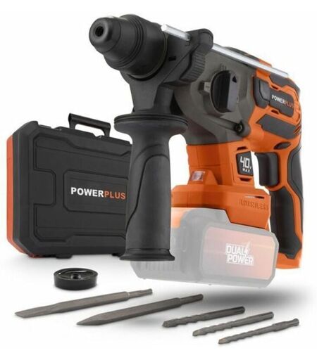 PowerPlus Martello perforatore senza fili 40V 5J SDS-Plus brushless + 5 accessori - dual power POWDP15680 - Fornito senza batteria né caricabatterie