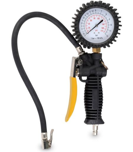 Descrizione dettagliata del prodotto: - prodotto: pistola di gonfiaggio con manometro - marca: PowerPlus - universo: accessori per pneumatici - utilizzo: controllo della pressione e gonfiaggio dei pneumatici - caratteristica: manometro di controllo - manometro: da 0 a 12 bar - pressione utilizzata: 8 bar - accessorio: raccordo rapido standard fornito ...
