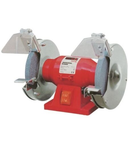 SMERIGLIATRICE DA BANCO Scocca motore rinforzata, parti metalliche a massa, interruttore bipolare, supporti calvanizzati regolabili, cuffie proteggimole in acciaio, 2 mole di diversa grana, 2950 giri/min. - Watt 150 - mole à 150 mm.  ...