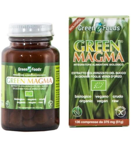 Green Foods GREEN MAGMA Biologico Ottenuto da pulverizzazione del succo Delle giovani foglie verdi dell'orzo Questo prodotto contiene oltre 20 differenti tipi di enzimi vivi, compreso il potente antiossidante SOD (super oxide dismutase) e più di 70 differenti micronutrienti quali potassio, calcio, … ...