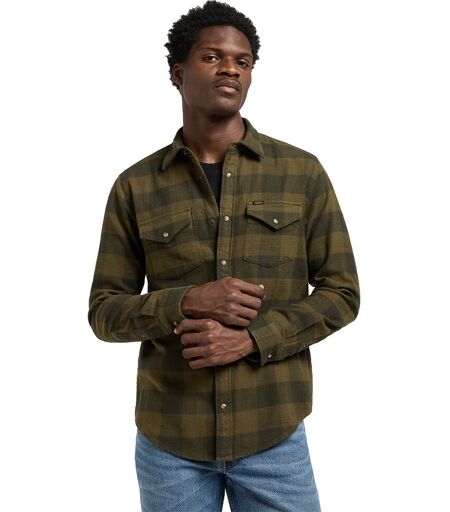 Lee Camicia A Maniche Lunghe Clean Western Army Green Buffalo Check M