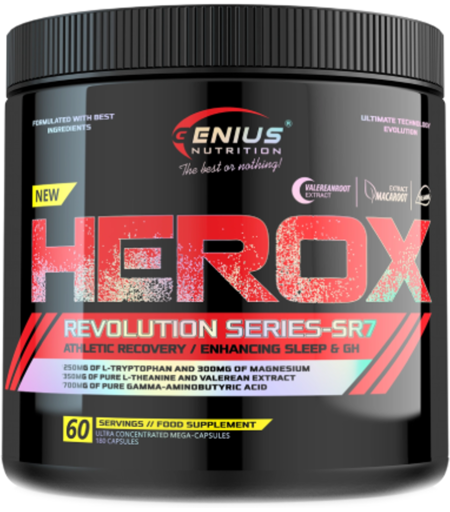 Herox – il tuo fedele compagno durante periodi stressanti. GABA (acido gamma-aminobutirrico) agisce nel corpo umano come un cruciale neurotrasmettitore inibitorio nel sistema nervoso centrale. Permette il corretto trasferimento di informazioni e stimoli nelle cellule nervose. Invecchiamento, stress e stile di vita sono solo alcuni dei fattori che influenzano la produzione di GABA nel corpo. L-teanina è un'aminoacido che si trova naturalmente nelle foglie del tè verde ( Camellia sinensis) e in alcune varietà di funghi. È noto per le sue proprietà calmanti. L-triptofano è un aminoacido essenziale, il che significa che il nostro corpo non può produrlo da solo e deve essere ottenuto attraverso l'alimentazione. Si trova, tra le altre cose, nella carne di tacchino, nei latticini, nel pesce, nelle uova. L-triptofano è importante per diverse funzioni corporee, influenzando principalmente la produzione di serotonina e melatonina. Con aggiunta di melatonina per favorire il sonno. La melatonina è un ormone naturale che regola le attività umane in armonia con il bioritmo giorno-notte dell'organismo. È nota anche come “ ormone del sonno”. La sua produzione aumenta la sera, quando è buio, e ci prepara al sonno. Al mattino, quando c'è luce, i suoi livelli diminuiscono, permettendo al corpo di svegliarsi. Con l'avanzare dell'età, la produzione di melatonina inizia a diminuire. Questo è uno dei motivi per cui gli anziani hanno spesso problemi di sonno, insonnia. La melatonina contenuta in questo complesso contribuirà a ridurre il tempo necessario per addormentarsi.* Se viaggiate spesso in aereo, contribuirà anche ad alleviare i sintomi associati alle differenze di fuso orario e vi aiuterà ad adattarvi più rapidamente ai nuovi fusi orari.** Il prodotto contiene anche due utili estratti – estratto di maca ( Lepidium meyenii) ed estratto di valeriana ( Valeriana officinalis), noti per i loro numerosi benefici. *L'effetto benefico si ottiene con l'assunzione giornaliera di 1 mg di melatonina poco prima di coricarsi. **L'effetto benefico si ottiene assumendo almeno 0,5 mg poco prima di coricarsi il primo giorno di viaggio e nei giorni successivi all'arrivo nella località di destinazione. Supporto olistico con vitamina D3 e minerali. Con il prodotto Herox del marchio Genius Nutrition fornirai al tuo corpo supporto durante il sonno e nei periodi di stress. Gli sportivi potranno utilizzarlo efficacemente per favorire una più rapida rigenerazione dopo l’allenamento. L'efficacia sarà ancora maggiore con l'aggiunta di vitamina D3, magnesio e zinco. Tutti e tre sono estremamente importanti per molte funzioni corporee, contribuendo: alla normale funzione del sistema immunitario (D3, zinco), al mantenimento di ossa normali (D3, magnesio), al normale funzionamento del sistema nervoso (magnesio), alla riduzione della stanchezza e dell’affaticamento (magnesio), alla normale funzione psicologica (magnesio), al normale metabolismo energetico (magnesio), alla protezione... ...