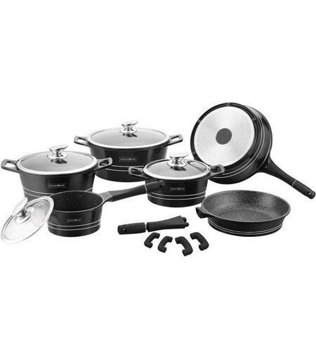 ROYALTY LINE - Batteria Pentole e Padelle 14 Pz Antiaderente In Pietra Lavica Black RL-ES1014M