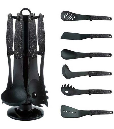 NORTHIX Set Mestoli da Cucina 7 Pz Resistenti al Calore Antiaderenti Colore Nero