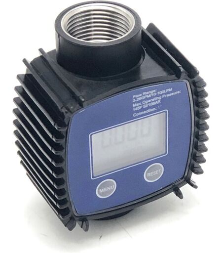 Misuratore di flusso digitale per pompa carburante Diesel Adblue® acqua con 1'' connettori Contenuto 1 misuratore digitale per pompa di liquidi Descrizione Questo flussometro vi permetterà di calcolare il consumo della vostra pompa. Sarete in grado di visualizzare i dati in litri, galloni, pinte (PT), quarti di gallone (QT). Visualizza la portata dell'ultimo utilizzo (0-999.99) e la portata totale (0-99999.99). Si prega di notare che questi prodotti sono testati in fabbrica e quindi possono mostrare leggere tracce di liquidi. Specifiche tecniche Connettori: 1'' (BSPF1) Portata: 10-100 L/Min Materiali: Alluminio + plastica PPS Precisione: +-1 Pressione massima: 10 bar Tensione di funzionamento: 2.3-3.3v Funziona con due batterie AAA in dotazione Compatibile: Diesel, cherosene, acqua, Adblue®. Peso: 0.35Kg Dimensione del cartone: 12x9x8cm Dimensioni del prodotto: 10.3*8.5*5.5cm ...