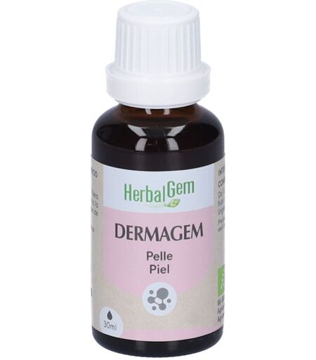 Gli integratori non sostituiscono un’alimentazione equilibrata e variegata e uno stile di vita sano.Dermagem agisce in profondità sul terreno e dà sollievo nei casi di prurito e arrossamento. Drena la pelle, libera le tossine e equilibra il pH, permettendo di rinforzare la barriera cutanea grazie alla sinergia delle gemme. La gemma di olmo è un eccellente drenante cutaneo, ricco di zinco, contribuisce a calmare il prurito. La gemma di quercia, ricca di zinco contribuisce al mantenimento di una pelle sana.IngredientiUmidificante: glicerolo*; alcol*; acqua; macerati glicerinati di: Olmo campestre* gemme, Viburno*gemme, Ribes nero* gemme di foglie e Quercia*gemme di foglie. *Ingredienti provenienti da agricoltura biologicaAssunzione consigliataDa 5 a 15 gocce al giorno, fuori dai pasti, pure sotto la lingua o diluite in acqua.AvvertenzeNon superare la dose giornaliera raccomandata. Tenere fuori dalla portata dei bambini al di sotto dei tre anni. Si sconsiglia l'uso in gravidanza e durante l'allattamento. In caso di allergia a uno degli ingredienti, evitare l'uso del prodotto. Non utilizzare in caso di gravidanza e allattamento. Conservazione: Conservare in un luogo fresco e asciutto. Si prega di fare riferimento, se necessario, ad ulteriori istruzioni riportate sulla confezione.Contenuto nettoFormato da 30 ml.ProduttoreHerbalgem Italia Srl Viale del Lavoro, 19/4 37030, Colognola ai Colli, VR Italia ...