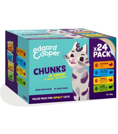 Edgard&Cooper; Multipack Bocconcini in Salsa 24 x 85 g. è il cibo umido ideale per gatti, studiato per soddisfare le necessità carnivore degli amici felini. Ogni scatoletta contiene il 53% di carne o pesce selezionato, disponibile in 4 gustose varianti. La ricca salsa aggiunge sapore e rende i bocconcini irresistibili, perfetti anche per i gatti dai palati più esigenti. Inoltre, l'integrazione di frutti ed erbe contribuisce a migliorare la salute del tuo gatto, offrendo un pasto completo e nutriente. I bocconcini in salsa Edgard Cooper rispecchiano una dieta biologicamente appropriata, garantendo il benessere e la felicità del tuo gattino. Perfetto per chi cerca una soluzione pratica e conveniente per nutrire il proprio gatto con ingredienti di alta qualità! Scatola contenente 24 lattine di bocconcini in salsa per gatti adulti. Set composto da: - 6 lattine da 85 g Edgard & Cooper Bocconcini Pollo in Salsa per Gatti Adulti - 6 lattine da 85 g Edgard & Cooper Bocconcini Salmone e Pollo in Salsa per Gatti Adulti - 6 lattine da 85 g Edgard & Cooper Bocconcini Tacchino e Pollo in Salsa per Gatti Adulti - 6 lattine da 85 g Edgard & Cooper Bocconcini Agnello e Pollo in Salsa per Gatti Adulti In tutte le ricette non c’è traccia di zuccheri aggiunti né di cereali. ...