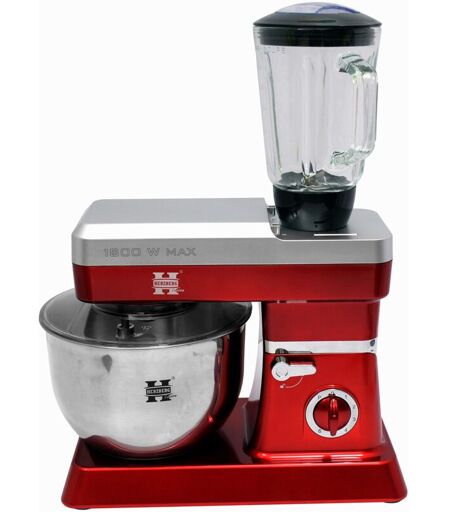 HERZBERG HG5065-RD, Robot Petrin Multifunzione, Blender in Vetro 1.7L, Potenza massima 1800 w, Regolazione 6 velocità, Capacità ciotola 6.5L, Acciaio