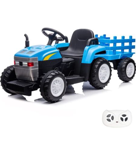 Trattore Elettrico per Bambini T7 12V - 2 a 5 anni - con Rimorchio - con Telecomando - Blu ...