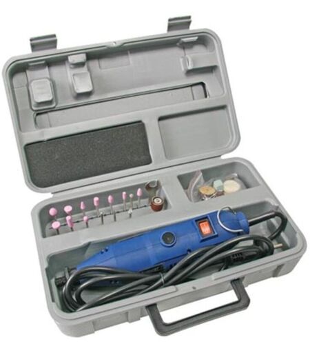 Informazioni sul prodotto Primärfarben Blau,Tiefe des Produkts 60 mm,Höhe des Produkts 45 mm,Breite des Produkts 230 mm,Gewicht Produkt 620 g,Material Polyamid 66 Alimentazione Nennleistung der Eingangsfrequenz 50 Hz,Leistungsaufnahme Leistung 135 W,Maximale Eingangsspannung VAC 230 V Connessioni elettriche Typ des Netzsteckers Type C (Eurostecker) Proprietà fisiche Länge des Kabels 1.8 m,Anzahl der Stücke 40 Proprietà d'uso Einstellbare Drehgeschwindigkeit Ja,Maximale Umdrehungsgeschwindigkeit 32000 r/min,Minimale Umdrehungsgeschwindigkeit 10000 r/min Dimensioni dell'imballaggio 1 Contenuto della fornitura Inhalt des Sets Bohrer: 10000-32000 U/min - mit Ein/Aus-Schalter Schleifstein: 10 Stück Diamant-Bits: 2 Stück Verbindungsstifte: 3 Stück Trennscheibe: 8 Stück Polierscheibe: 4 Stück Schleifband: 4 Stück Bohrer: 2 Stück (Ø 3,0 & Ø 2,3 mm) Spannzange: 2 Stück (Ø 3,2 & Ø 2,35 mm) Nassstein: 1 ...