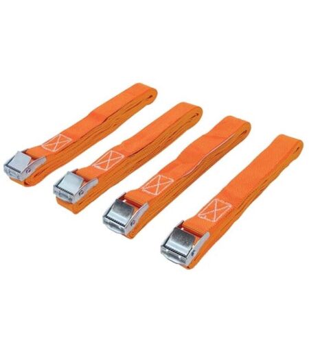 Read these instructions carefully before using the straps. - The working load limit is 1/3 of the maximum capacity. - Never exceed the maximum capacity. - Do not use the straps for towing and lifting or to restrain the movement of people or animals. - Inspect webbing and hardware before use. Make sure that the tie-downs are not frayed, damaged or weather damaged and that all parts are in good condition. - Replace the product if webbing or hardware is damaged, cut or worn. Dati tecnici Maximale Belastung 133 kg Informazioni sul prodotto Primärfarben Orange,Material Polypropylen Proprietà fisiche Anzahl der Stücke 4,Hochbelastbar Nein,Länge Gurt 3.6 m,Materialgurt Polyester,Breite Lasche 25 mm Proprietà d'uso Zurrkraft 400 kg Dimensioni dell'imballaggio 1 Contenuto della fornitura Haken Nein Dati ambientali Feuchtigkeitsgeschützt Ja ...