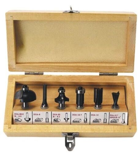 Informazioni sul prodotto Primärfarben Schwarz, Braun,Detaillierte Primärfarben Holz,Tiefe des Produkts 90 mm,Höhe des Produkts 50 mm,Breite des Produkts 170 mm,Gewicht Produkt 365 g,Material Holz,Zusätzliches Material Metall Proprietà fisiche Anzahl der Stücke 6,Verpackung Holz-Box,Schloss-Typ Metallschlösser, Fallverschluss Dimensioni dell'imballaggio 1 Contenuto della fornitura Inhalt des Sets Nutenstein: ø 28,6 mm / r=9,5 mm gerader Bit: ø 6 mm Abrundungsbohrer: ø 22 mm / r=6,3 mm Bündigfräser: ø 12,7 mm gerader Bit: ø 12 mm Schwalbenschwanzbohrer: ø 12,7 mm / Winkel 14° Schaftdurchmesser: 8 mm ,Inklusive Etui Ja ...