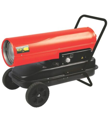 This hot air canon from Perel runs on diesel or kerosene and is suitable for outdoor use or in a well-ventilated area. The unit has a 30 kW of heating power and is equipped with a stainless steel combustion chamber with a fan, a thermostat, a 38 l tank, an oil gauge and a temperature display. In addition, this hot air canon has a range of safety features: flame protection, thermal protection and empty tank protection. When the tank is empty the unit will automatically turn off. Dati tecnici Nennleistung 30 kW,Luftdurchsatz 720 m³/h,Schutz Tank leer, Flamme, Überhitzung Informazioni sul prodotto Sprachen der Gebrauchsanweisung Niederländisch, Englisch, Französisch, Deutsch, Polnisch, Portugiesisch, Spanisch,Primärfarben Rot,Zusätzliche Farben Schwarz,Tiefe des Produkts 45.6 cm,Höhe des Produkts 59 cm,Breite des Produkts 88 cm,Gewicht Produkt 21 kg,Material Edelstahl,Zusätzliches Material ABS, Gummi Alimentazione Nennleistung der Eingangsfrequenz 50 Hz,Leistungsaufnahme Leistung 230 ...