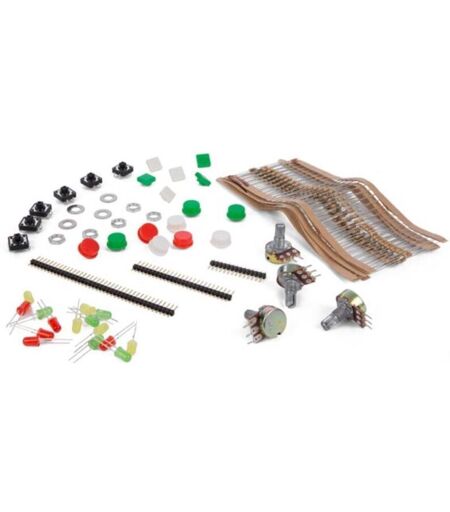 Informazioni sul prodotto Primärfarben Mehrfarbig,Tiefe des Produkts 9 cm,Höhe des Produkts 4.5 cm,Breite des Produkts 18.6 cm,Gewicht Produkt 77 g Dati tecnici Spezifikationen kits & modules Funktionen 210 Stk. Widerstandsset (47K, 4,7K, 100K, 10K, 1K, 1M, 100R) 5 x rote LED 5 mm 5 x grüne LED 5 mm 5 x gelbe LED 5 mm 4 x 50K Potentiometer (K047AM) 6 x Taster 4-polig 12 x 12 mm 9 x runde Kappe für 4-poligen Schlüsseltaster 6 x quadratische Kappe für 4-poligen Schlüsseltaster 4 x Unterlegscheibe für Potentiometer (12 x 12 x 0,3 mm) 5 x Mutter für Potentiometer (7 x 7 x 0,75 mm) 2 x 40-polige 2,54 mm einreihige Stiftleiste 1 x Kunststoff-Klarsichtbox 186 x 90 x 45 mm Proprietà d'uso Niveau der Codierkenntnisse keine,Elektronik-Kenntnisse 2,Mechanische Fähigkeiten 1,Fertigkeiten im Löten keine Dimensioni dell'imballaggio 1 ...