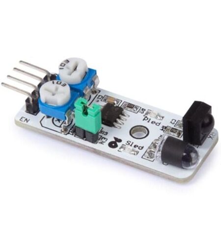 This module is an inexpensive solution for an obstacle avoidance sensor, perfect for robotic projects and very easy to interface directly with Arduino® and compatible boards. The module has two potentiometers, one to control frequency and one to control the intensity. Dati tecnici Spezifikationen kits & modules Betriebsspannung: 3,3 V bis 5 V Ausgang: digital (ein/aus) Erkennungsschwelle: einstellbar über 2 Trimmer Abstandsbereich: 2 bis 10 cm Einstellung R6: Frequenzeinstellung 38 KHz (bereits optimiert) Einstellung R5: IR-LED-Leistungsanpassung (bereits optimiert) Betriebstemperatur: -10 C bis +50 C Wirkungswinkel: 35 E/A-Schnittstelle: 4-Draht-Schnittstelle (- / + / S / EN) Informazioni sul prodotto Sprachen der Gebrauchsanweisung Englisch,Primärfarben Weiß,Tiefe des Produkts 3.7 cm,Höhe des Produkts 15.5 cm,Breite des Produkts 7.8 cm,Gewicht Produkt 24 g Proprietà d'uso Niveau der ...