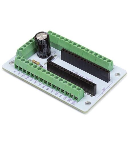 This TERMINAL ADAPTER FOR ARDUINO® NANO is designed to allow easy access of all the interface pins of an ARDUINO® NANO via terminal connectors. We also added additional terminal connectors for the 5V, GND and D5 & D6 pins on the side, making this the ideal module to use as a driver board for digital addressable LED strip projects. Informazioni sul prodotto Sprachen der Gebrauchsanweisung Niederländisch, Englisch, Französisch, Deutsch, Spanisch,Primärfarben Mehrfarbig,Tiefe des Produkts 7.8 cm,Höhe des Produkts 3.8 cm,Breite des Produkts 15.5 cm,Gewicht Produkt 47 g Dati tecnici Spezifikationen kits & modules Verbinden Sie eine große Anzahl digitaler Leitungen mit einem Arduino und behalten Sie dabei den Platzbedarf des ursprünglichen Nano bei Prototyping ohne Löten ideal als Treiberplatine für digital adressierbare LED-Streifenprojekte Spezifikationen Eingangsspannung: 7 – 12 VDC Betriebsspannung: 5 V max. Strom (bei ...