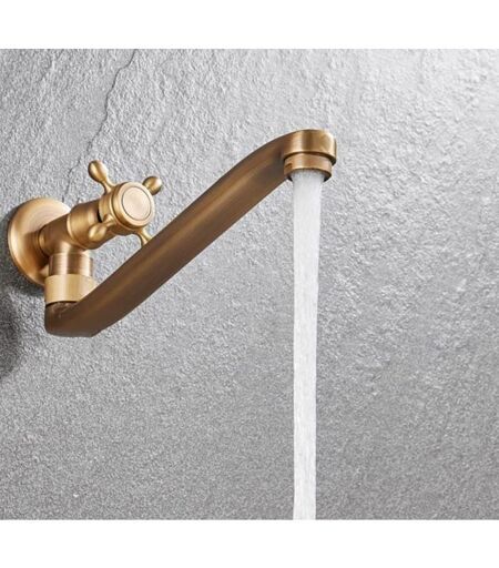 FORTUNEVILLE Rubinetto Antico, Miscelatore Lavabo a Parete in Ottone Girevole di 180°, Rubinetto Freddo Lungo a Tubo Singolo per Bagno Esterno Piscina Giardino