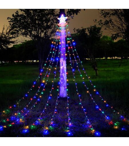 FITAGS Luci di Natale per esterni, luci per albero di Natale a cascata da 360 LED con spina impermeabile IP44, 8 modalità di luci a forma di stella