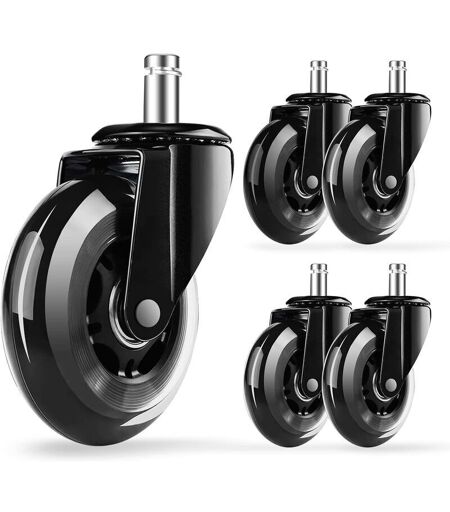 [Facile da installare] Il diametro standard dello stelo è di 11 mm, adatto alla maggior parte dei modelli di sedie girevoli, come sedie da ufficio e da gioco, ad eccezione di IKEA e Topstar. Per evitare possibili problemi, consigliamo di misurare le dimensioni delle rotelle in uso prima di ordinare. [Scorrimento super silenzioso] Le rotelle consentono di scivolare silenziosamente sul pavimento, consentendo di godere di un ambiente piacevole mentre si lavora o si gioca. Il morbido materiale in gomma poliuretanica protegge il pavimento da possibili graffi durante l'uso. [Adatto a vari pavimenti] Le ruote sono adatte alla maggior parte dei tipi di pavimenti, puoi goderti una rotazione di 360° senza lasciare segni di usura su marmo, moquette, pavimenti in legno o piastrelle, ecc. Ideale per uffici per adulti, soggiorni o camerette per bambini. [Capacità di carico affidabile 250 kg] Il telaio e le parti interne sono realizzati in acciaio ad alta resistenza e le ruote hanno una capacità di ...