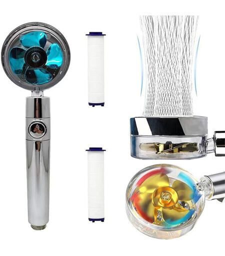 FORTUNEVILLE - Soffione doccia a risparmio idrico con rotazione a 360 gradi e piccolo ventilatore in abs, ugello spray ad alta pressione, accessorio