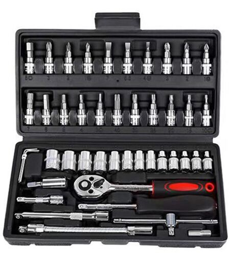 FORTUNEVILLE Set di chiavi a bussola abcrital da 1/4 di pollice, 46 pezzi, acciaio al carbonio, con cricchetti, chiave a bussola, impugnatura a t, giunto
