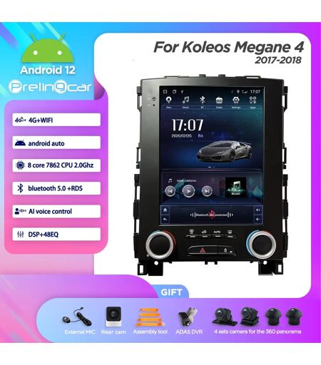 Lettore Radio Android 12 per auto per Koleos Megane 4 2017-2018 anni navigazione GPS Video multimediale per schermo verticale in stile Tesla ...