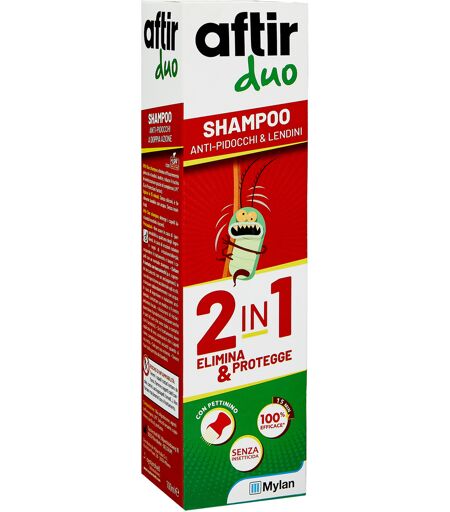aftir duo SHAMPOO ANTIPIDOCCHI - Prodotto senza insetticida, a duplice azione: 1)elimina pidocchi e lendini in 15 minuti; 2)previene la reinfestazione. Con applicatore per una più agevole distribuzione del prodotto. Efficacia scientificamente provata. Elimina efficacemente pidocchi e lendini. Deter… ...