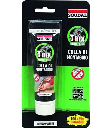SOUDAL ADESIVO DI MONTAGGIO ''T-REX'' EFFETTO VENTOSA gr. 100+25 omaggio - Bianco